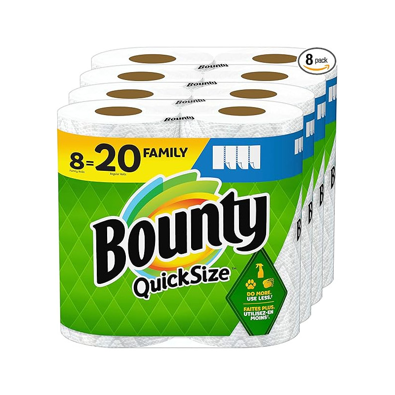• Pack contains 8 Family Rolls of Bounty white Quick Size Paper Towels
